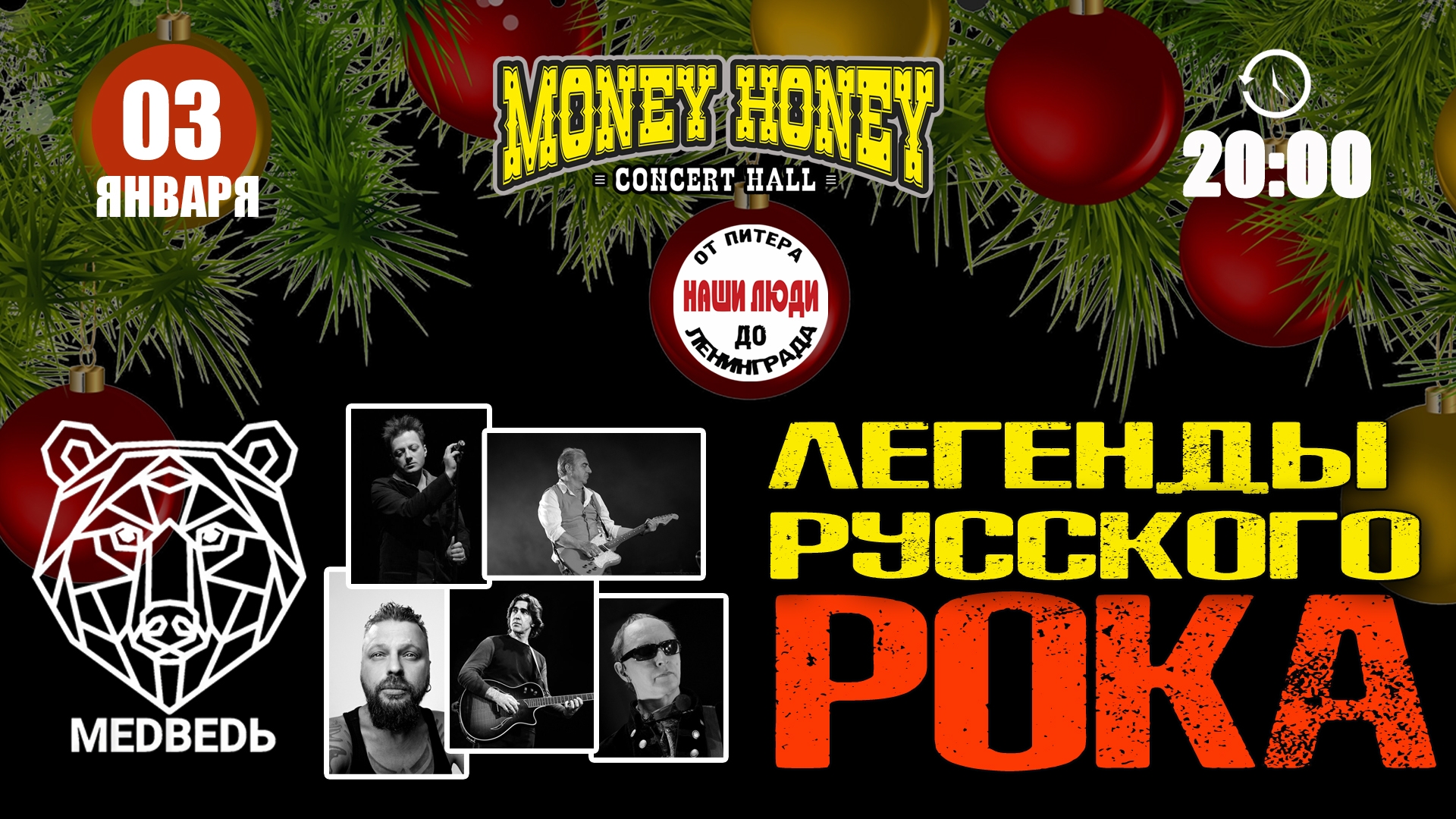 Встречайте Новый год под ритмы легенд нашего рока! 3 января группа "Медведь" устраивает грандиозный новогодний концерт, который зарядит вас энергией на весь 2026 год! �✨